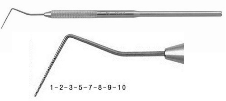 Thiết kế của cây đo túi lợi PROBE thường bao gồm một đầu đo nhỏ và nhọn, được chế tạo từ vật liệu không gây tổn thương cho nướu và lợi. Đầu đo có độ chính xác cao, giúp nha sĩ dễ dàng đo đạc độ sâu và kích thước của túi lợi một cách chính xác.